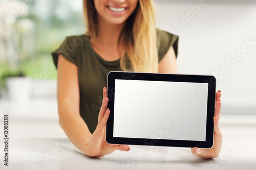 Young woman with tablet in kitchen