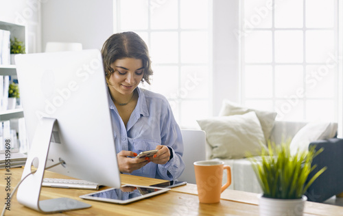 Young woman working with graphic tablet in office