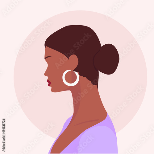 Young woman's face in profile and dark hair. Vector illustration in a flat style