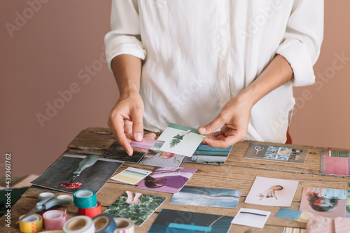 Young Woman's Hands Selecting Pictures for a Moodboard