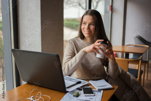Young women working with laptop while sitting at café