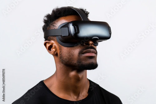 Youngster watching 3d object in virtual world fun cheerful vr glasses goggles generative ai