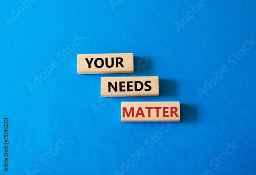 Your needs matter symbol. Wooden blocks with words Your needs matter. Beautiful blue background. Business andYour needs matter concept. Copy space.