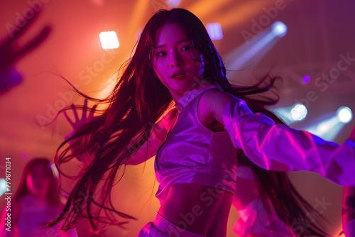 Youthful Exuberance Shines - K-pop Girl Group Dances Under Neon Lights