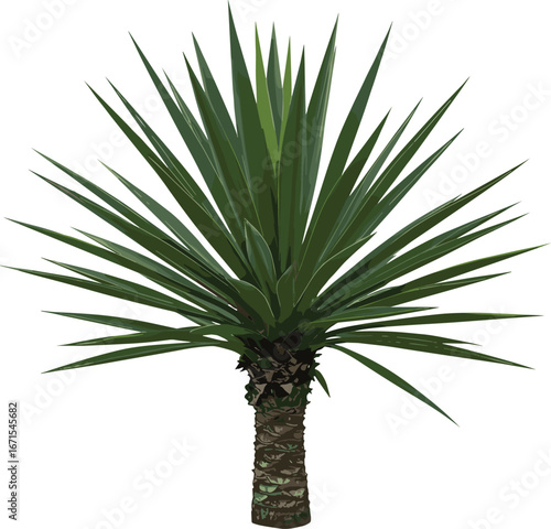 Yucca Tree with Thick Trunk and Spiky Green Leaves Isolated on White Background – Drought-Tolerant Landscape Plant for Arid Climates