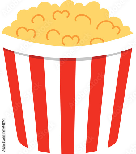 Yummy Popcorn in Striped Bucket, Cinema Sweet Popcorn, Unhealthy Movie Snack, Tasty Entertainment Pop Corn illustration