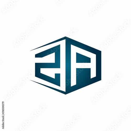 ZA monogram logo with hexagon shape and negative space style ribbon design template