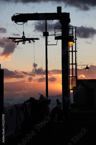 zachód słońca na Teneryfie,w tle widać podnośnik do łodzi