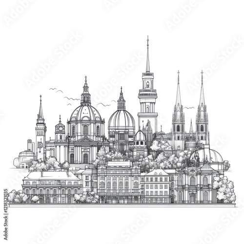 Zagreb Cityscape Sketch Black and White Architecture Illustration