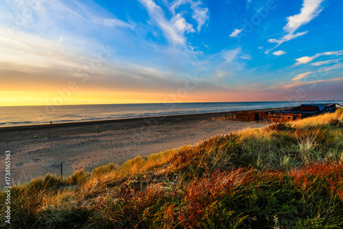Zandvoort aan Zee Coastal Scene with Sunset , Beach, Promenade, and Seasonal Atmosphere