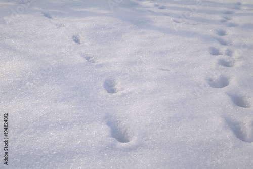 zbliżenie na ślady kota na śniegu
