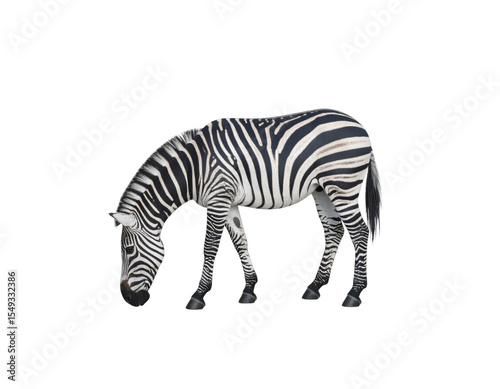 Zebra Grazing in Natural Habitat Illustration Isolated on White Background