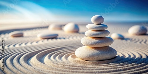 Zen Pebble Pyramid: Surreal White Stone Balance Art Photography