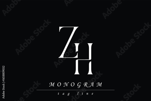 ZH Initials Stylized Monogram Design Featuring Intertwined. Artistic representation of monogram initials creatively arranged and displayed.