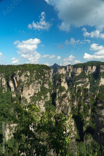 Zhangjiajie national forest park, China, Glass bridge of Zhangjiajie China Tianzishan with blue sky, concept of world heritage, avatar, heritage peak or cliff mountain, tourist attraction famous place
