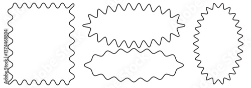 Zig zag edge square and rectangle shape collection. Black grunge jagged square frames. Vector torn paper sheet for sticker, collage, banner. Ripped shapes silhouettes on transparent background. EPS 10