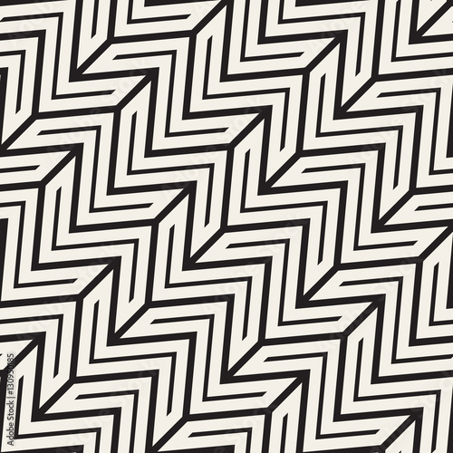 ZigZag Edgy Stripes. Vector Seamless Black and White Pattern.