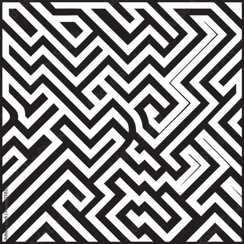 Zigzag Wave Maze – Abstract Black and White Interlocking Line Vector Pattern