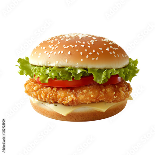 Zinger Chicken Sandwich with Lettuce Isolated on Transparent Background
