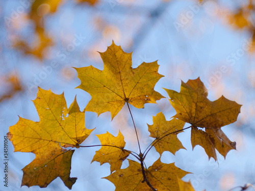 żółte liście na tle niebieskiego nieba