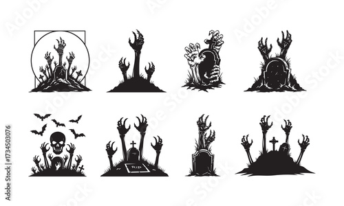 Zombie Hands Emerging From Graves And Ground Halloween Silhouettes vector illustration
