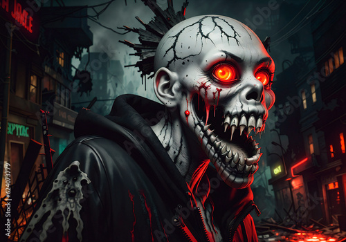 Zombie man in the city at night. Halloween. Horror. Generative AI.