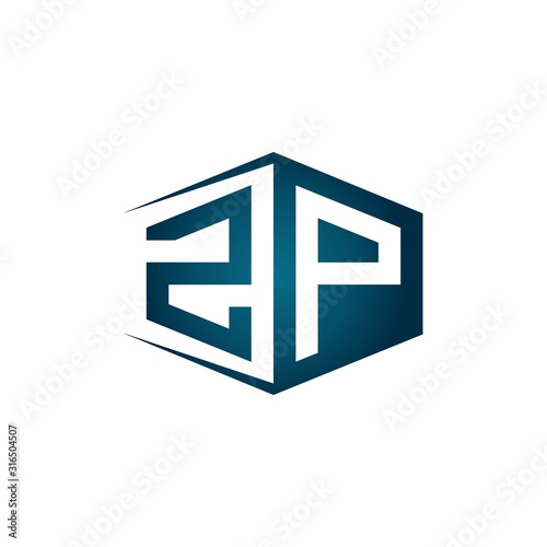 ZP monogram logo with hexagon shape and negative space style ribbon design template