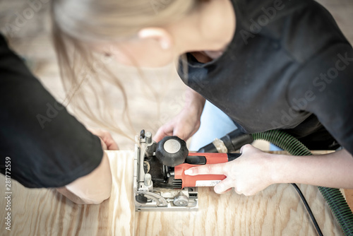 zwei junge Schreiner arbeiten im Team an einem Möbel