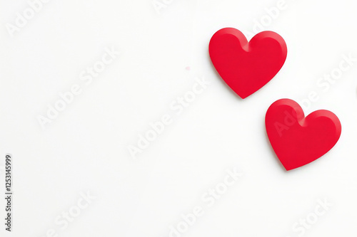 Zwei rote Herzen auf weißem Hintergrund – schlicht, elegant und romantisch, ideal für minimalistische Designs. Generative KI.