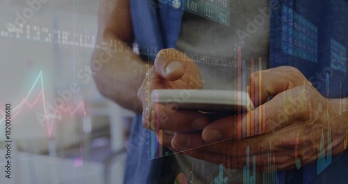 smartphone, hand, medicals, scrub, touch screen, clinic, datum, chart, visualisation, finger, phone, tapping, holding, interact, reviewing, fingernail, overlay, graph, bar, line, candleholder, panel, blurred, closeup, clinical, office, workspace, forearm, adult, male, health care, professional, focused, digital, technology, monitoring, soft, ambient, neutral, shallowSHARE