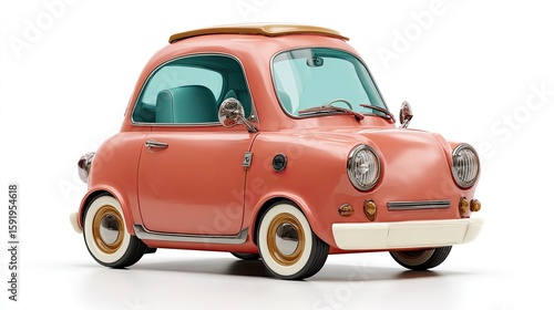 Acrylic Prints: Small and cute cartoon bunchy retro car isolated on white background. 3d illustration