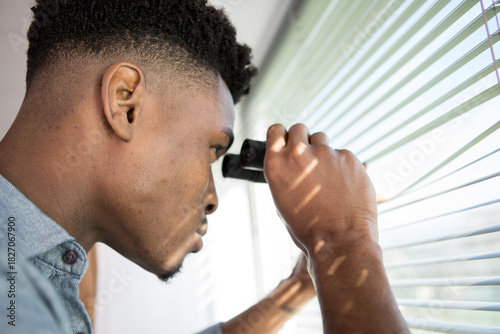 man, binocular, window, jealousy, unhappy, theorist, hand, realize, unconvinced, people, snoop, sad, suspicious, curious, rumour, stare, envy, doubt, jealous, observe, concept, look, secret, conspiracy, privacy, curiosity, paranoia, confused, reveal, suspicion, question, person, skeptic, theory, watching, faceSHARE
