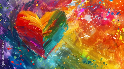 Canvas Prints: Abstract art painting featuring a colorful heart created with vibrant brushstrokes and splattered paint