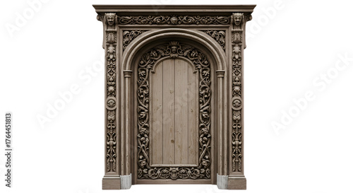 Canvas Prints: Ornate carved wooden door with elaborate baroque decorative frame and archway