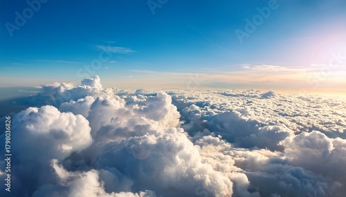 Canvas Prints: vast expanse of fluffy white clouds viewed from above sunlight illuminating the scene atmosphere fluffy