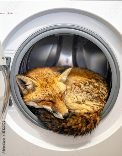 fox, wild, animal, sleeping, asleep, curled, comfortable, warm, clothes, dryer, machine, appliance, laundry, room, basement, home, house, indoor, surprising, unexpected, place, cosy, cute, rust-eaten, fur, wildlife, urban, intruder, peaceful, resting, nap, hideout, hidden, concept, stock, photo, interior, snug, domesticSHARE