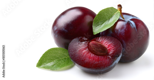 plum, fruit, slice, whole, fresh, ripe, red, organic, natural, food, nourishment, healthy, vegan, vegetarian, diet, dessert, ingredient, produce, agriculture, harvest, antioxidant, juicy, sweet, plant, leaf, botanical, isolated, background, white, studio, minimal, clean, copy space, still life, closeup, macro, texture, raw, edible, summer, snack, farming, grocery, market, lifestyle, coloursSHARE