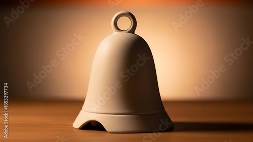 bell, ceramic, minimalist, studio, serene, quiet, neutral, simple, elegant, object, pottery, craft, artwork, decoration, tabletop, brown, beige, clean, smooth, form, ring, signal, sculpture, artisan, hand-made, display, surface, classic, shape