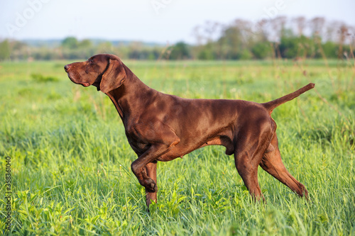hunting dog, brown, point, dog, german, domestic, pedigree, animal, sunlight, active, breed, muscular, pet, pointer, energy, purebred, pose, canino, short hair, spring, strong, hunt, trained, shore, summer, cable, male, adorable, field, copper, hunter, command, smell, partridge, background, nature, short hair, short, sporting, rackedSHARE