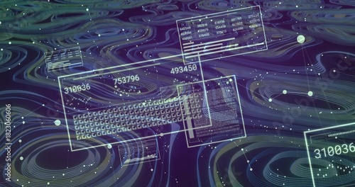 panel, keyboard, contour, wave, number, node, dashboard, interface, neon, purple, teal, topology, semitransparent, rectangular, numeric, schematic, code, text, tabular, glowing, network, line, particle, point, swirling, virtual, abstract, cyberspace, layered, centered, flocked, overlapping, connected, thin, blur, pale, green, deep, futuristic, digital, visualisation, gradient, noise, ambientSHARE