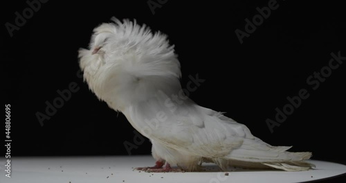 wildlife, profile, jacobin, fancy, pigeon, white, feather, up, collar, dove, tree branch, nature, animal, breed, bird, wild, wing, fauna, cute, grey, beak, beautiful, alertness, watchful, move, look, studio, no people, slow motionSHARE