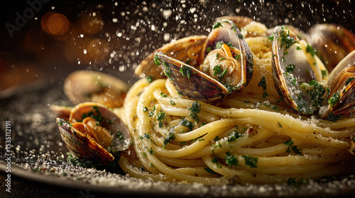 spaghetti, clam, pasta, parsley, cheese, savoury, delicious, plate, italian, cookery, seafood, mediterranean, dining, meal, epicure, dish, culinary, cooked, fresh, herb, seafood, appetising, eatery, food, tasty, bokeh, closeup, texture, garnish, seasoning, favor, traditional, elegant, presentationSHARE
