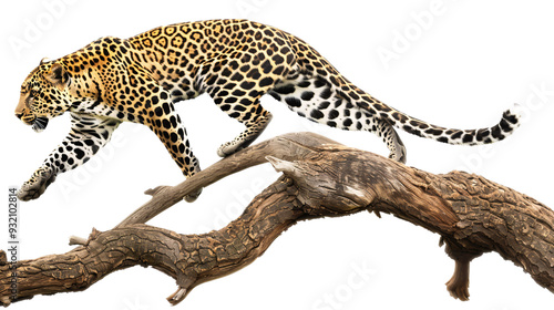 Galaxy Cases: Leopard climbing a tree to pounce on an unsuspecting animal, white background for clipping