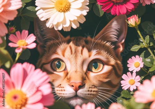 Galaxy Cases: The image is a highly detailed, high-resolution photograph capturing a close-up view of a domestic cat's face partially obscured by a lush, colorful bouquet of flowers.