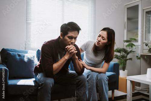 couple, stress, sorrowful, depression, comfort, support, human relationships, worried, mental, health, emotional, man, woman, asian, home, unhappy, empathy, bonding, problem, crisis, family, help, feeling, spouse, partner, sitting, domestic, indoor, suffering, despair, anxiety, concerned, understanding, communication, love, care, frustration, overwhelmed, solitude, trust, consoling, well-being, young, adult, lifestyle, real, people, modern, thoughtfulSHARE