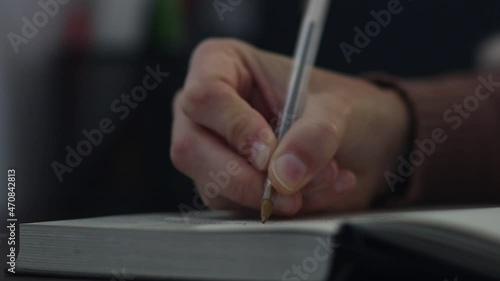 closeup, hand, woman, girl, writing, pen, handwriting, notebook, journal, diary, write down, idea, thought, feeling, goal, project, annotate, book, poetry, writer, author, poet, night, inspiration, taking notes, indoor, lifestyle, person, planner, planning, quiet, dark, office, creative, literature, inspired, working, occupation, femaleSHARE