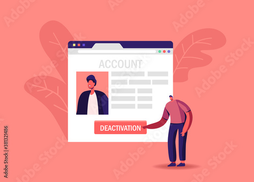 social, account, character, push, buttons, delete, man, network, web, page, online, private, information, cyberspace, cancellation, vector, people, person, message, reset, end, enable, touch, left, turn, liquidation, disable, deactivate, space, status, commercial, datum, technology, banking, hack, quit, global, over, clicking, device, mobile, business, process, tiny, huge, concept, cartoon, illustrationSHARE