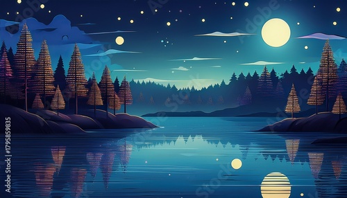 Greeting Cards: nightly lake scene stylized