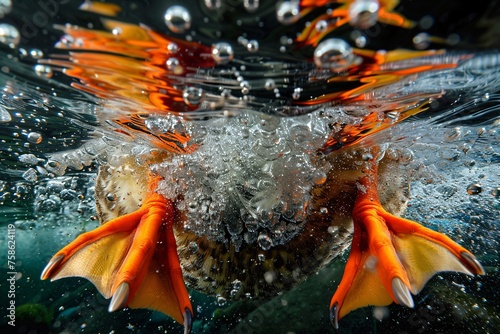 close, duck, web, foot, paddle, intricate, look, mechanic, swim, animal, natural, anatomy, structure, single, locomotion, ornithology, aquatic, activity, detail, water bird, action, motion, biology, wildlife, underwater, dynamic, behaviour, waterSHARE