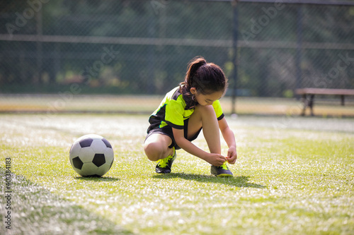 girl, soccer field, soccer, shoelace, tying, preparation, playing, sport, exercising, people, one person, asian ethnicity, vitality, children, confidence, childhood, growth, fun, well-being, healthy lifestyle, park, football, footwear, education, day, summer, outdoors, looking away, looking down, china, asia, front view, sunlight, beijing, east asia, photo, color image, soccer player, playing field, practicing, playful, well-beingSHARE